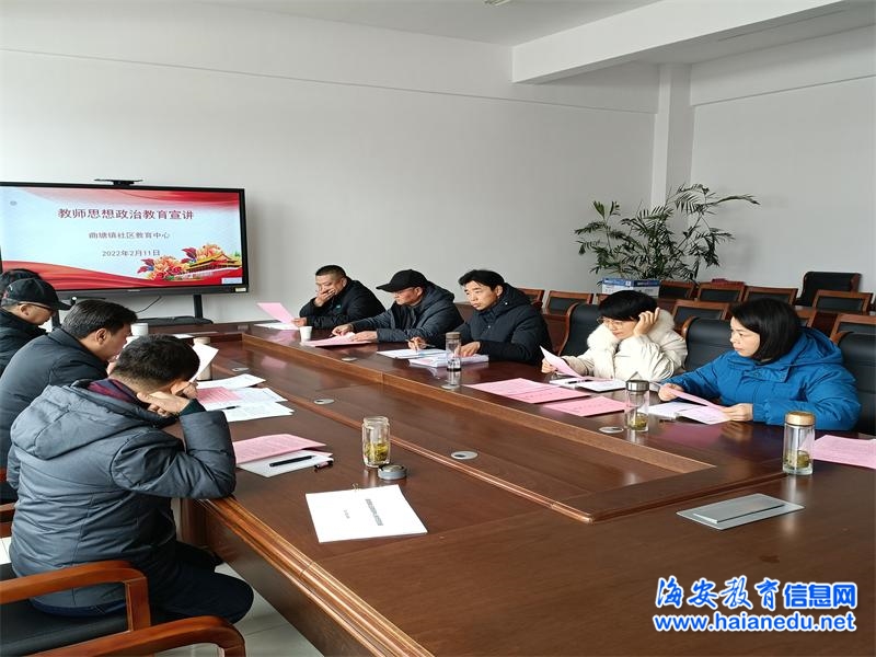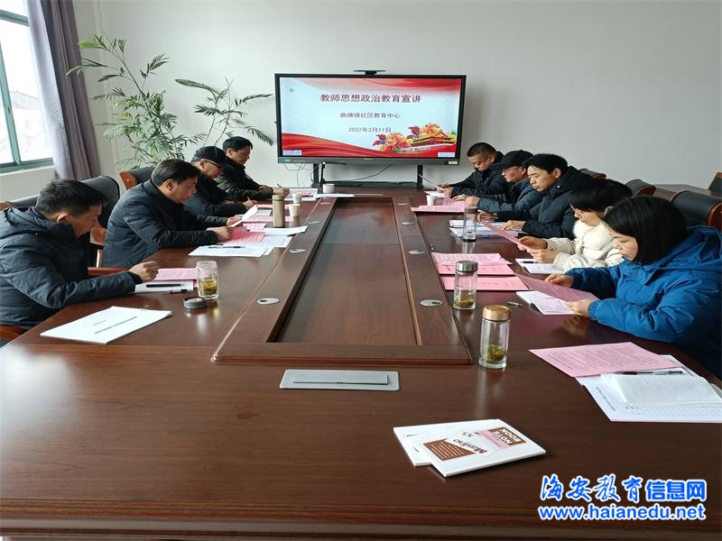 2月11日上午,曲塘镇社区教育中心开展教师思想政治教育宣讲活动,旨在更进一步提高教师思想认识,办群众更满意的社区教育。