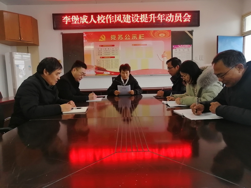 为进一步贯彻落实海安市委、市政府关于开展作风建设提升年活动的统一部署,2月11日,李堡镇社区教育中心全体教师在二楼活动室召开开学工作暨作风建设提升动员大会。