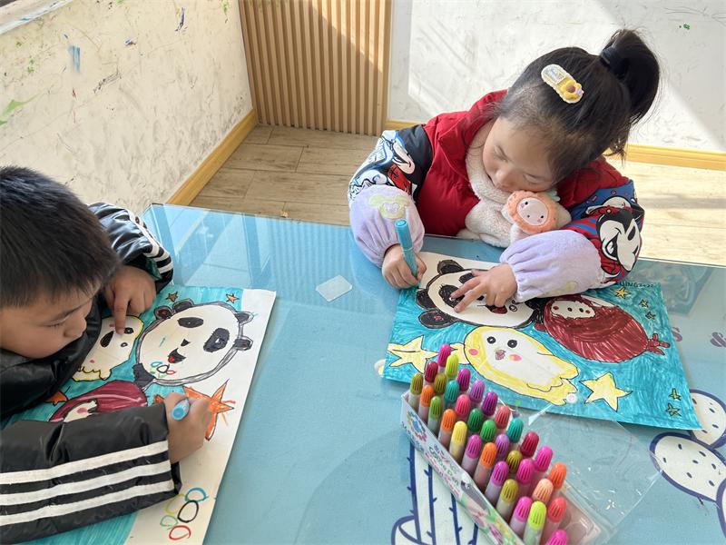 而小朋友们则对吉祥物“冰墩墩”“雪容融”感兴趣,冬奥会的开展使得吉祥物“冰墩墩”“雪容融”成为家喻户晓的“明星”,中桥村借此开展了“巧手绘冬奥,一起向未来”活动。10位幼儿园和小学的小朋友在志愿者指导下,用自己的小手绘出了冬奥会吉祥物,用一个个别具特色的“冰墩墩”和“雪容融”为北京冬奥会加油、喝彩!