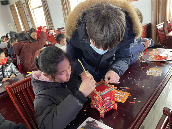 花灯是我国传统文化的典型元素之一,也是喜庆吉祥的象征。志愿者为孩子们准备了材料制作花灯,孩子们跃跃欲试。在家长和志愿者的协助下,孩子们通过剪、刻、拼插等制作方法,完成了属于自己的节日花灯。仇申杰同学说:“很喜欢社区组织的这次活动,让我们对传统节日有了更加深刻的了解,也让我们的假期生活变得丰富多彩。”