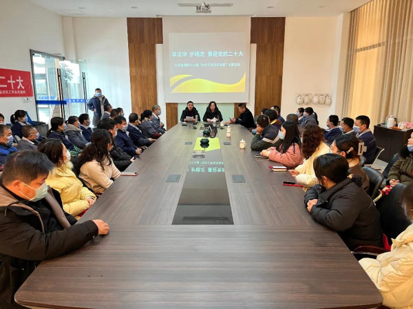 2月14日下午,海安孙庄街道组织平安法治志愿者深入南通中力科技有限公司开展“学法律、护稳定、喜迎党的二十大”第十六届农民工学法周主题法治宣传活动。
