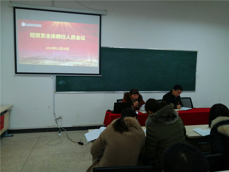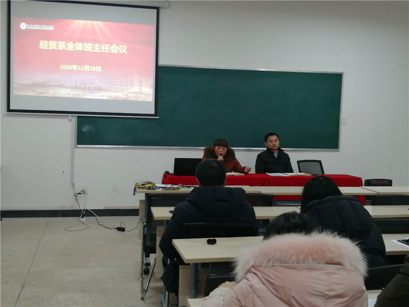 学期收官保成绩,常规例会提精神,学习制度促成效,人人学习守规矩。12月28日下午,经贸系在7号楼四楼会议室组织召开全体聘任人员会议及班主任例会,会议由经贸系负责人胡高贵主持,全体聘任人员参加。
