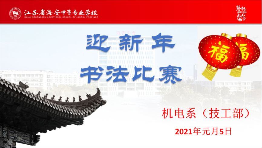 为进一步弘扬中华民族书法文化传统,传承和发扬中国书法文明,促进多民族学子共同学习,培养学生认真书写的良好习惯,提高学生写字水平,元月5日中午,机电系(技工部)在14号楼三楼会议室举行了迎新年硬笔书法比赛。