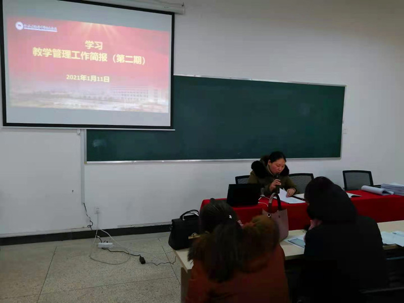 接着,许思艳同志带领大家共同学习《海安中专教学管理工作简报(第二期)》,简报主要分为2020年下半年教学工作回顾和今后的工作展望两部分。内容包括:一是前期主要工作。实施二级管理布局调整;组织年度师资调配聘任;组织修订人培方案;加强全校教学工作量调控;过渡维稳,标本同抓;推进教学改革;二是后期工作展望。定位思考,做强高职、做精高考、做大市场、做亮特色;工作展望,实施“四大工程”,实现“六个突破”;三是加强自身建设。精准定位、规范执行、过程控制、系统思维、担当作为、严管厚爱。最后,许思艳同志通报了教风、学风、教学管理调查情况并提出了对策和建议。
