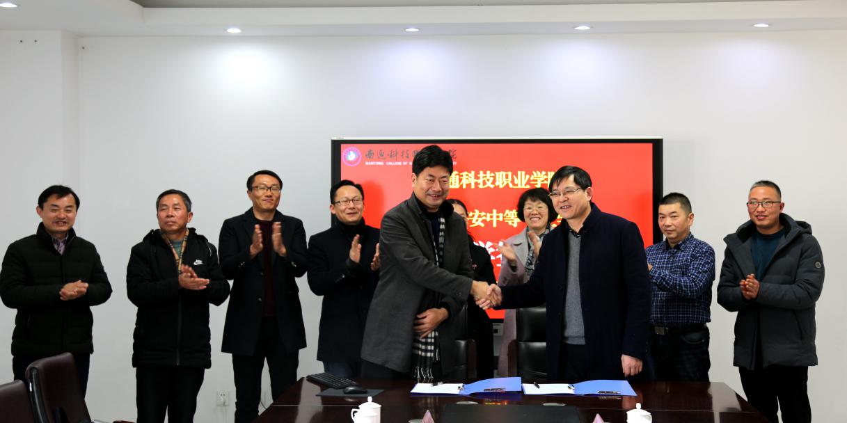 杭华校长与南通科技职业学院周昶副校长共同签订了中高职衔接3+3合作补充协议。