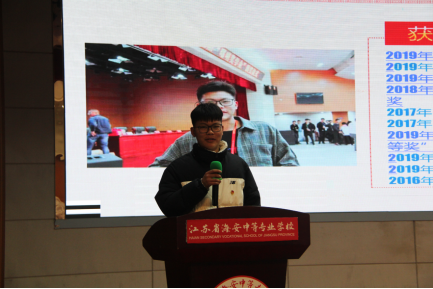 获奖学生代表刘琦、徐海峰同学与大家畅谈他们的成长历程,展示了他们在校期间参加各级大赛及各项活动所取得的成绩,激励在场的高一、高二年级所有同学奋发进取,奋起直追。