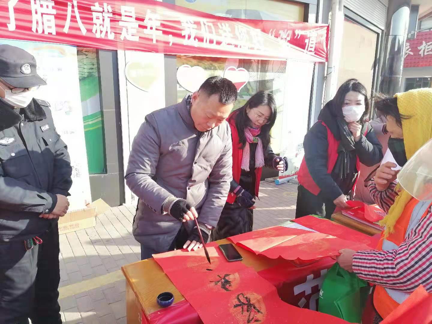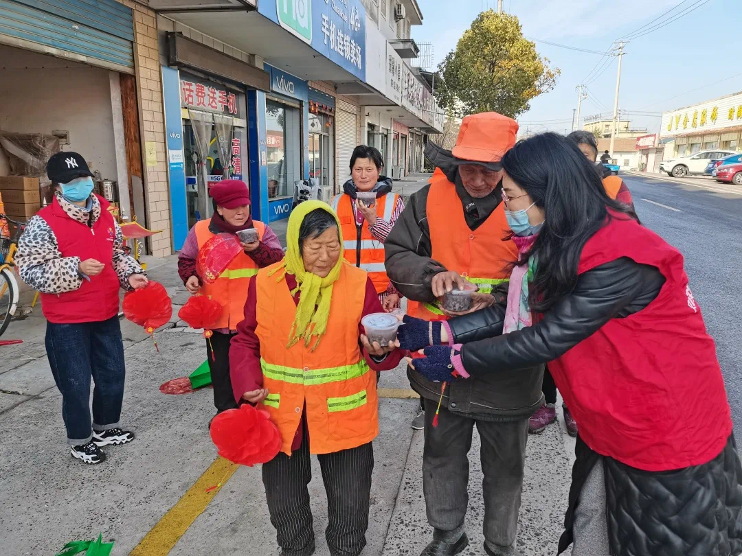 现场的群众很多人一手拿春联,一手拿腊八粥。一些老人情不自禁地说,“现在共产党好,每个节日都暖人心。”刘华梅、袁香、王洪风、王桂云等社区教育中心的老师,还特地为在墩头水韵路和商业街的环卫工人,送上春联、腊八粥以及其他礼品。感谢他们在寒冷的冬日里为小镇带来美丽清洁。在活动结束后,社区教育中心的老师们又到禾庄村,联合各组网格员,送春联送祝福到农户。