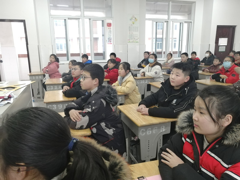张月琴从“年”的传说,说到春节习俗:年夜饭、贴“福”字、守岁等,重点讲述了春联的来历、书写的规范、张贴的讲究,其间还讲述了与春联有关的小故事,展示了不少春联作品,张老师语言幽默,教室里不时引发阵阵笑声,她告诉学生春联有很深的文化意蕴,从桃符到门神、从镇邪到好看、从实用到审美、从喜庆到祝愿,很好的体现了春联的发展变化。