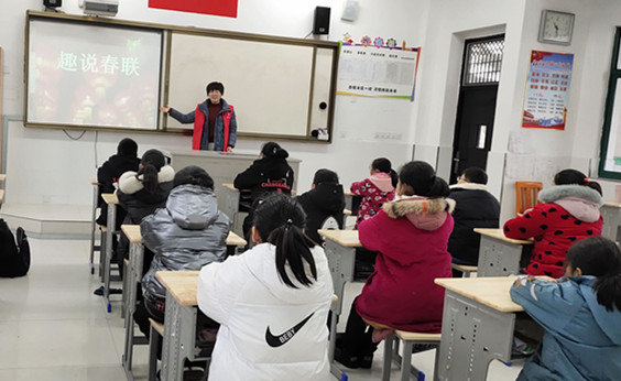 “千门万户曈曈日,总把新桃换旧符”, 过年家家贴春联是中华民族的传统习俗,春联抒发人们对来年的美好愿望,同时也增添了喜庆的气氛。近日,李堡镇社区教育中心邀请社区志愿者张月琴、许美娟等对青少年学生开展了春联知识讲座活动。