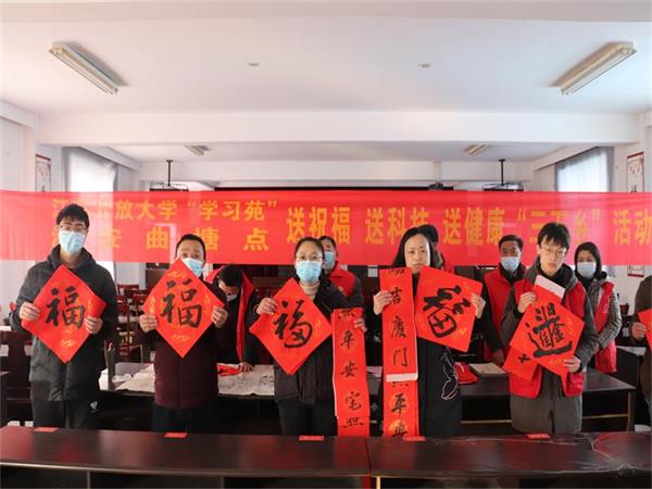 2月3日,江苏开放大学“学习苑”海安曲塘点走进曲塘村和郭楼村居民学校开展“送祝福、送科技、送健康”“三下乡”活动。