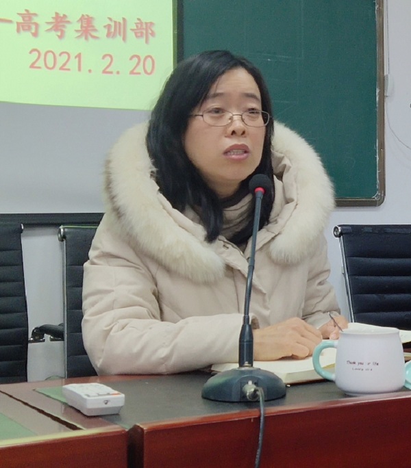 高考集训部负责人陆美莲首先对寒假作业的检查进行总结,对李海涛、吴海燕、吉拥琴、包加如、王香琴等老师寒假里逐日布置检查评讲作业的行为大加赞赏。接着,她介绍了新学期系部工作思路,对教学工作提出了具体要求,她指出,本次会议是集中归纳位、调整状态的收心会,是开学准备、接续奋进的动员会。她要求,全体教师要认真准备,精心上好“开学第一课”。她希望,所有教师要心往一处想,上下一盘棋,合力攻弱科;劲往一处使,拧成一股绳,聚力强教学;师生一条心,家校一体化,全力抓本科。