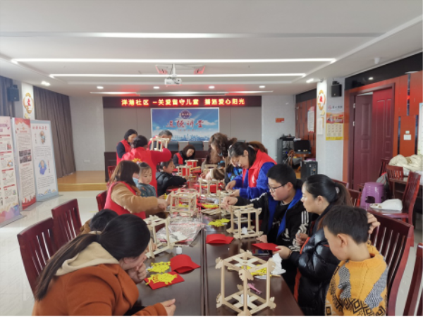 活动上,巾帼志愿者们为大家分发灯笼材料,讲解如何操作,小朋友们个个动手能力很强,经过反复尝试,最终把灯笼做了出来,个个喜笑颜开。