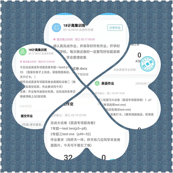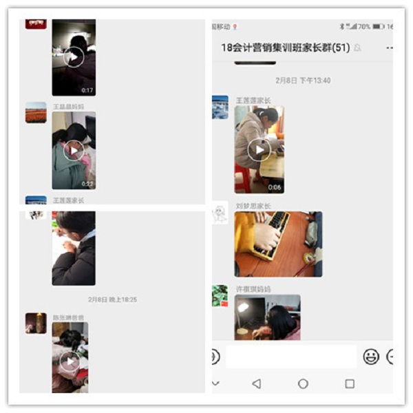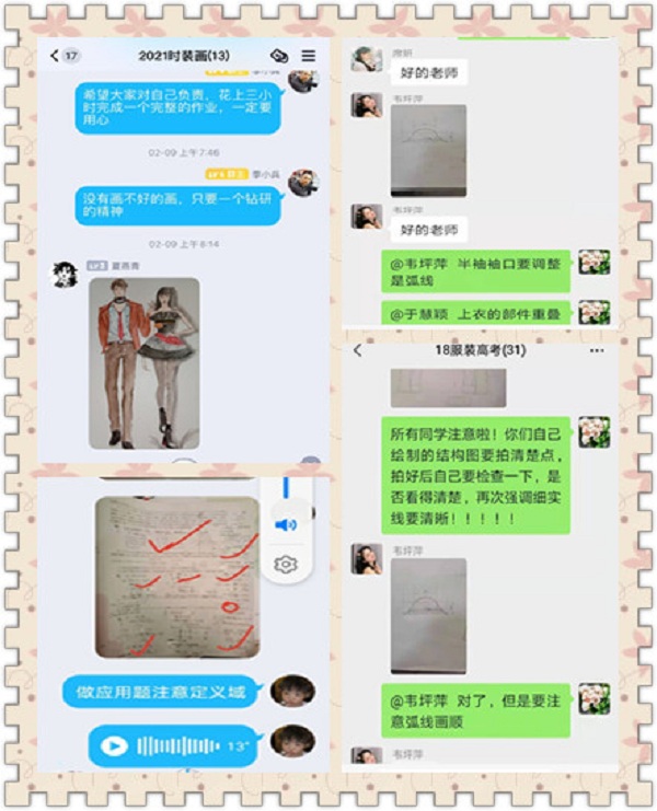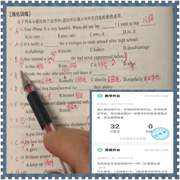 有了前一年的线上教学经验,老师们轻车熟路,他们自发通过QQ群,微信群,腾讯会议,钉钉,微信小程序等多种网络教学平台组织学生按时打卡完成作业,并及时评讲指导。