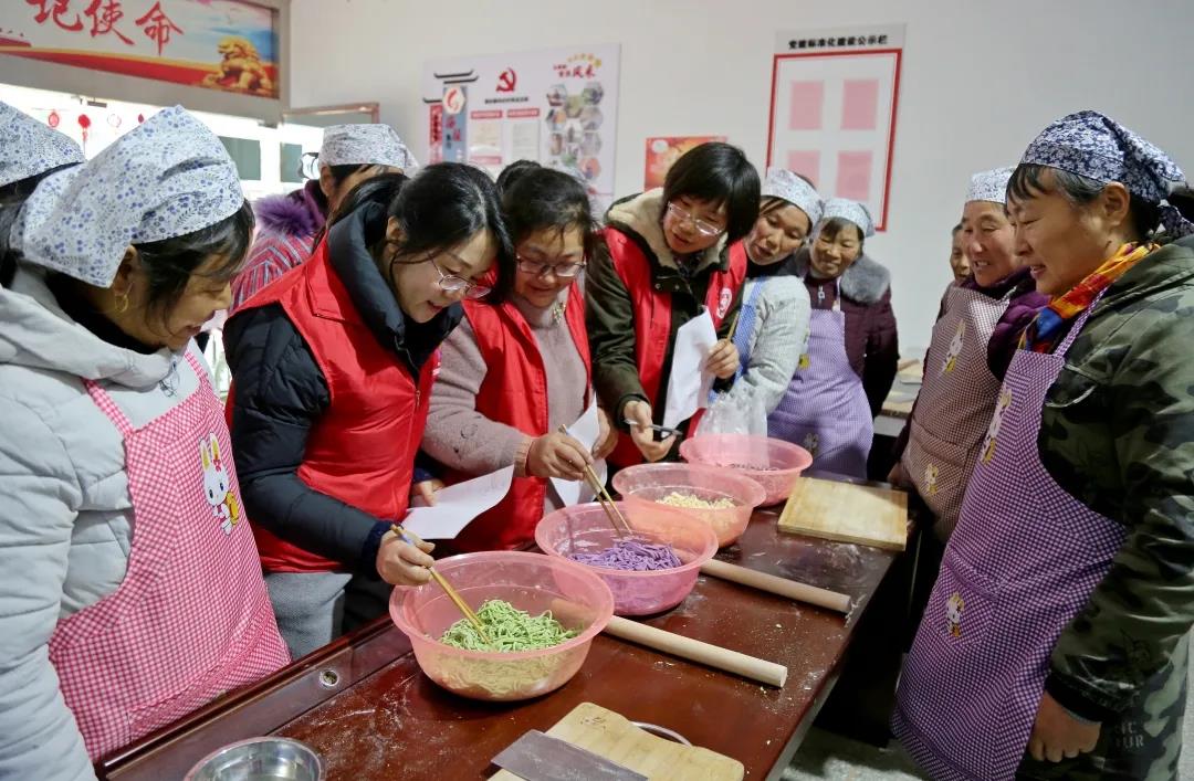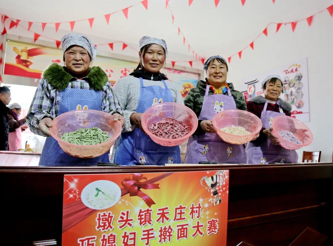 3月1日是农历正月十八,当天,墩头镇禾庄村在村党群服务中心开展“巧媳妇”手擀面比赛。