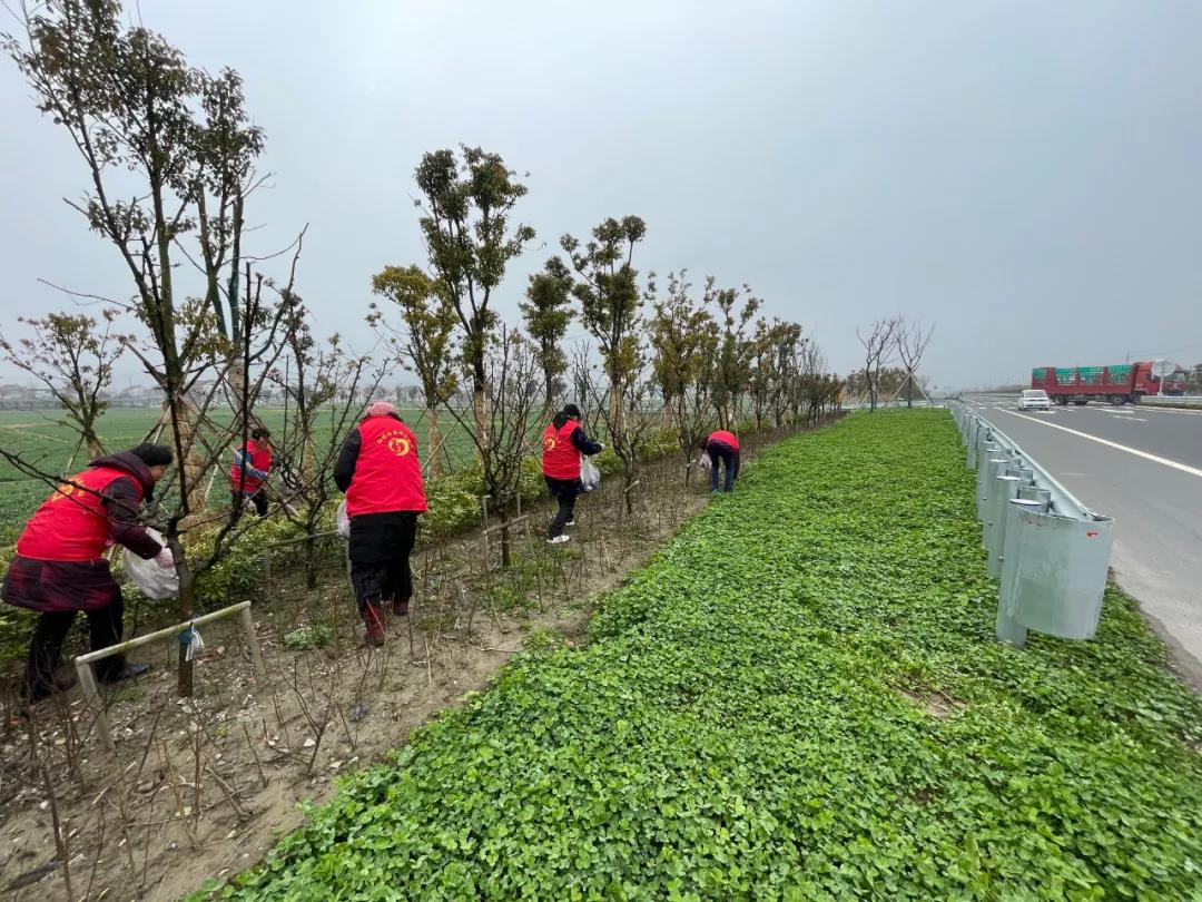 红旗村组织志愿者在226省道绿化带内捡拾垃圾,通过志愿者的身体力行引导带领村民保护爱护公共环境卫生。