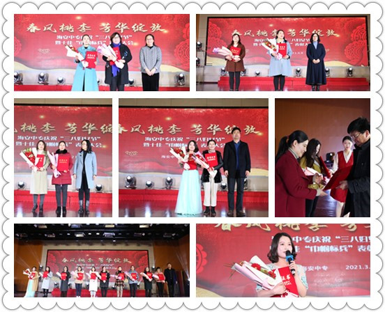 人间最美三月天,春花烂漫展新颜。3月9日,海安中专庆祝“三八”妇女节暨十佳“巾帼标兵”表彰大会在学校二楼报告厅举行。海安市妇联副主席马冬花,海安市教体局党组副书记、海安中专党委书记、校长杭华,海安市教育工委妇联主席陈萍及直属各妇联负责人,海安中专校级领导,全体女教职工300余人出席大会。