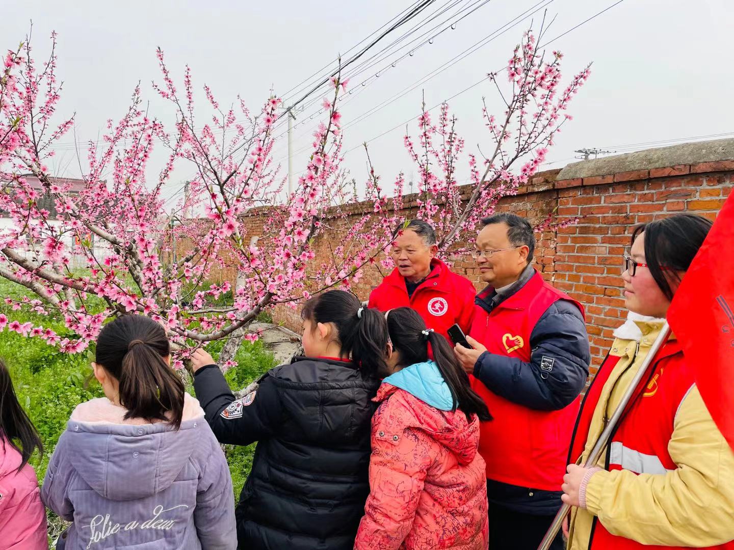 活动中,丁忠尤为小学生仔细讲解了本地紫桃的特点,了解桃树栽培技术,让学生吟诵关于桃花的诗句,歌唱关于桃花的歌曲,歌颂春天的美好,孩子们的欢声笑语,回荡在桃园上空。