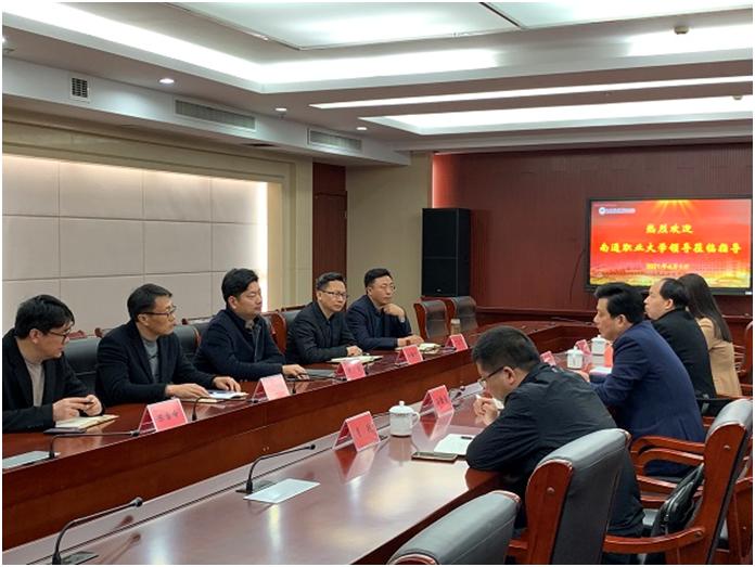 座谈会上,黄燕飞详细介绍了南通职业大学的办学理念、办学规模、办学愿景等基本概况,表达了进一步合作意向和设想。