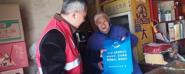 网格员身穿红马甲走进企业、小卖铺和主干道通过发放国家安全宣传手提袋和现场讲解等多种形式,向群众宣传讲解国家安全法、反间谍法、反恐怖主义法、国防法、密码法等涉国家安全法律安全防范等知识,让更多的群众接触和了解到国家安全方面和网络安全方面的法律法规知识。