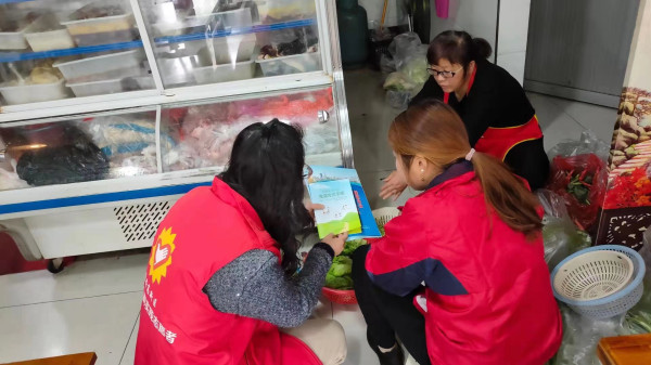 社区志愿者向辖区沿街商铺进行挨户宣传,用明了易懂的方式与商户讲解餐桌文明,推广分餐公筷,生熟食品要分开,不食用野生动物,注意开窗通风,保持室内空气流通等健康生活方式,同时了解他们疫苗接种情况,告知及早接种疫苗不仅可以保护自己,也是对顾客的负责,另外社区还通过小区宣传栏张贴海报,发放《生活方式手册 》《保健食品小常识》《垃圾分类手册》等方式进行宣传。