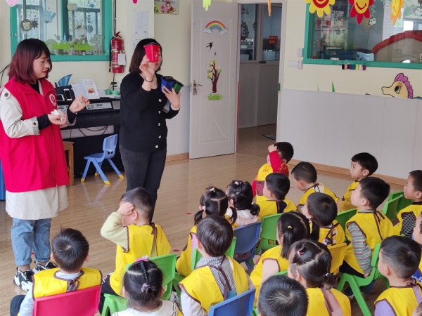 活动一开始,社区志愿者就以《小朋友爱清洁》这首琅琅上口的儿歌引入爱国卫生月的主题。“小鸭叫,嘎嘎嘎,叫我经常剪指甲。小鸡叫,叽叽叽,叫我别忘擦鼻涕。小狗叫,汪汪汪,叫我常常换衣裳。”在幼儿的心目中,小鸭小鸡等都是他们的好朋友,它们之间仿佛有一种天然的心理沟通,因此通过“朋友”的劝说和感化,对小朋友们产生了良好的教育效果。通过儿歌的方式既锻炼了幼儿语言表达能力,又培养了孩子们良好的卫生习惯。
