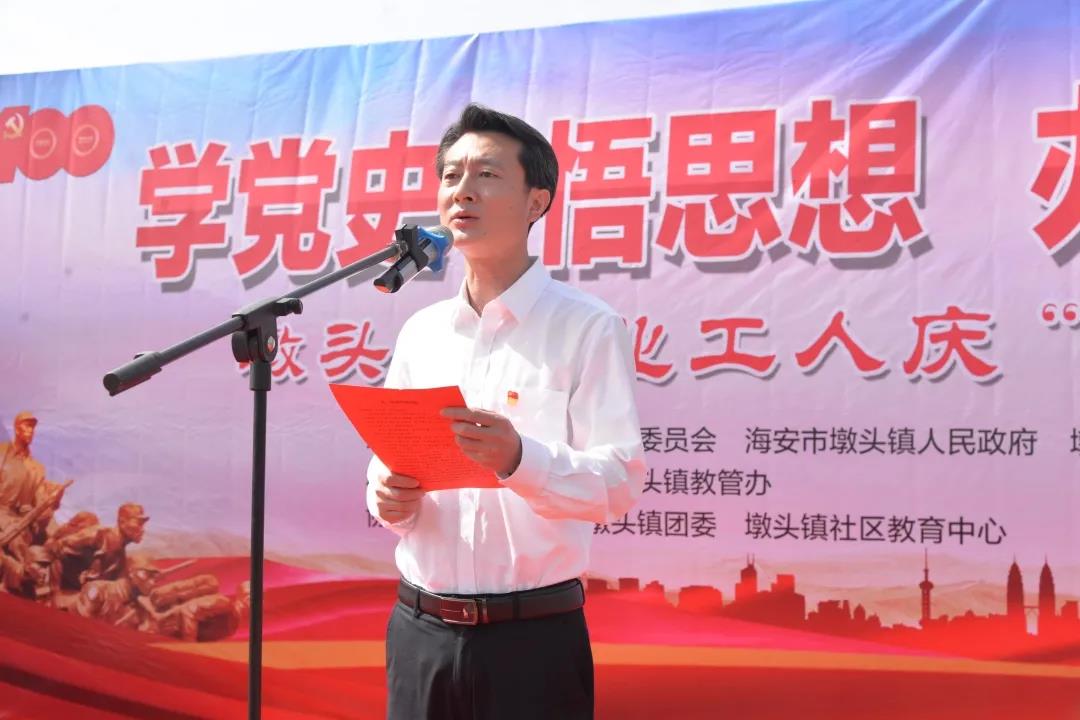 周亚东代表镇党委、政府向全镇广大干部职工和各阶层劳动者致以节日的问候。他指出,目前正处于建设苏中水乡、梦圆墩头的新阶段 ,号召职工朋友们进一步增强责任感、使命感,牢牢把握建设中国特色社会主义工会的重要原则,服从于党和政府的工作大局,使工会工作更好地体现时代性、把握规律性、富于创造性。