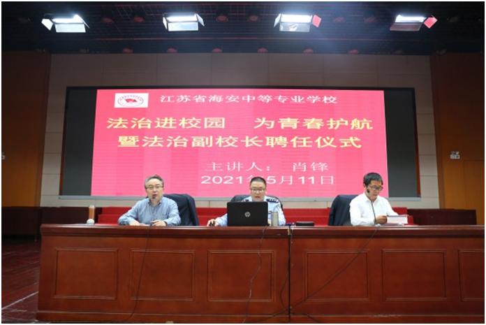 5月11日,海安市看守所所长、海安中专法治副校长肖峰应邀来校作“守底线,不触法,做一个对社会有益的人”法治讲座。党委委员、副校长唐永红致词,学生处桑长庚主任主持活动。徐州班、大理班500多名学生在图文信息大楼报告厅聆听法治讲座。