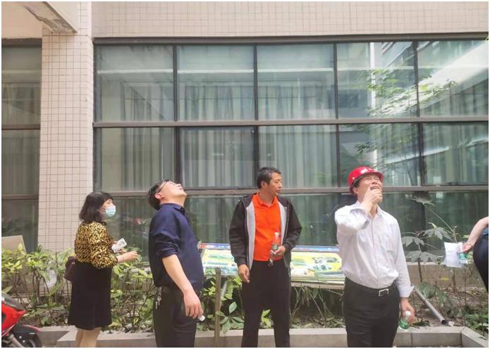 唐永红一行对教学楼、办公楼、学生宿舍等各类公共建筑的外墙瓷砖脱落、空鼓、松动等情况进行逐一排查。对发现的隐患区域现场落实张贴警示语,并拉好警戒线。