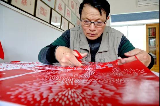 与共和国同龄的顾如铭是墩头中学退休教师,有着50年的党龄。他还是中国民间文艺家协会会员、上海民族画院院士、中国一级美术师、南通市非物质文化遗产海安剪纸传承人。