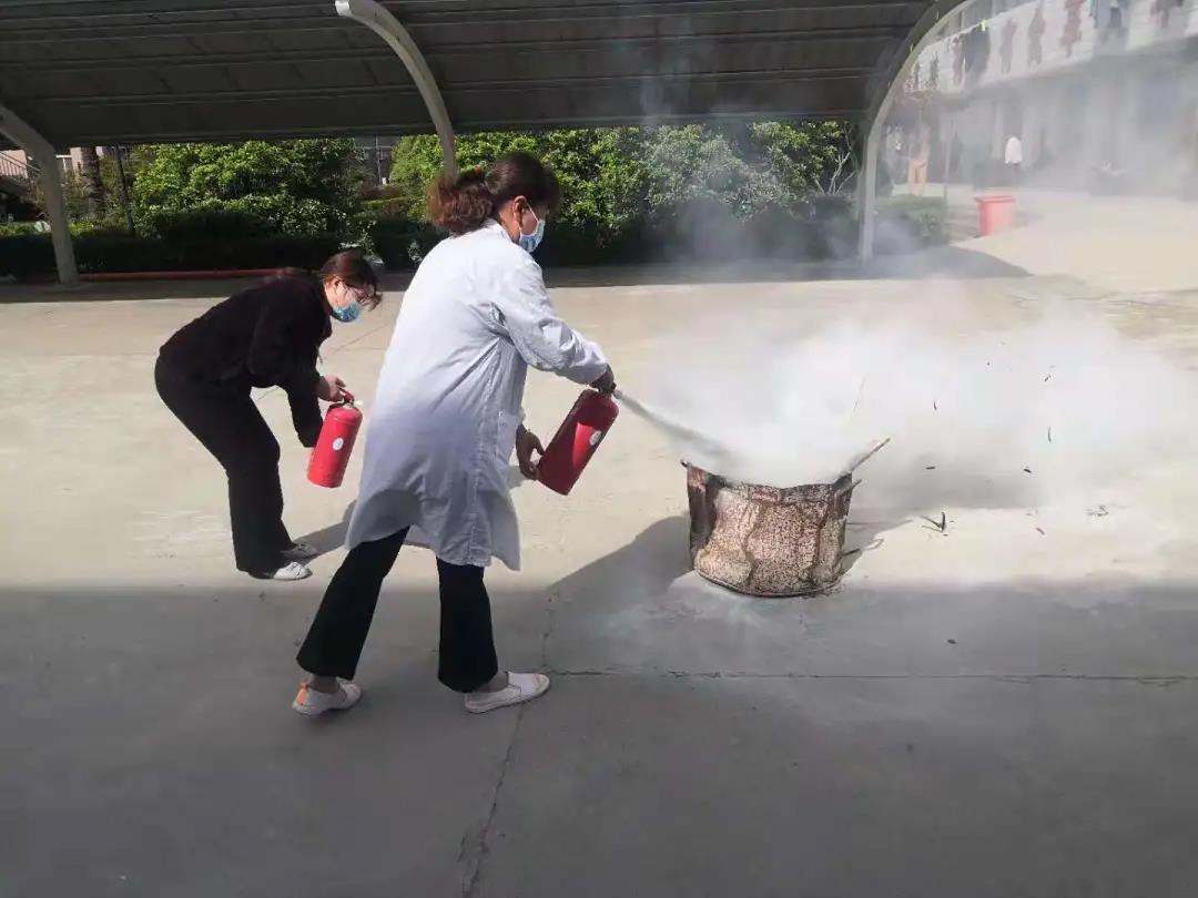 在使用灭火器扑灭初起火灾的演练中,消防安全管理人现场讲解灭火器的组成部分、正确的使用方法及注意事项和辨别失效的条件。新入职的员工现场使用灭火器对模拟初起火灾进行了实际扑灭操作,熟练掌握灭火步骤:提起灭火器至火源上风侧适当距离,拉开保险栓,对准火源根部,按下压把进行灭火。
