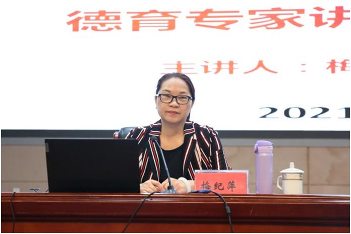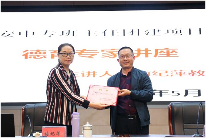 会上首先举行了聘书颁发仪式,聘请梅纪萍教授为海安中专德育工作指导专家。梅纪萍教授专题讲座以宏观历史发展视野深入分析了新时代职业院校德育工作的历史定位,系统梳理了党的十九大以来习近平总书记关于教育工作重要论述解析了新时代职业院校德育工作新要求,从把握总体要求、突出时代主题两方面阐明了如何做好新时代职业院校德育工作新思路。梅纪萍教授的精彩讲座既有深厚的时代理论意蕴,又有现实问题的深刻思考,是一顿丰盛的精神大餐,开阔了广大班主任时代视野和理论视野,对提升学校新时代德育工作具有重要实践指导意义。