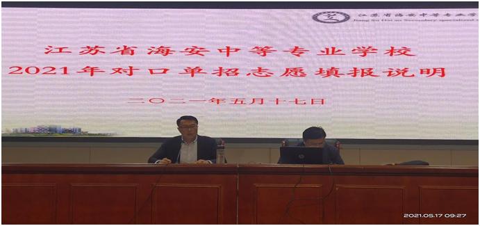 为做好我校2021年普通高校对口中等职业学校毕业生单独招生网上填报志愿工作,更好地服务考生,确保考生志愿填报准确无误,根据学校《高三学生填报志愿流程方案》,海安中专教务处分别于5月17日和20日对第一阶段和第二阶段填报志愿的学生进行了集中指导和说明。