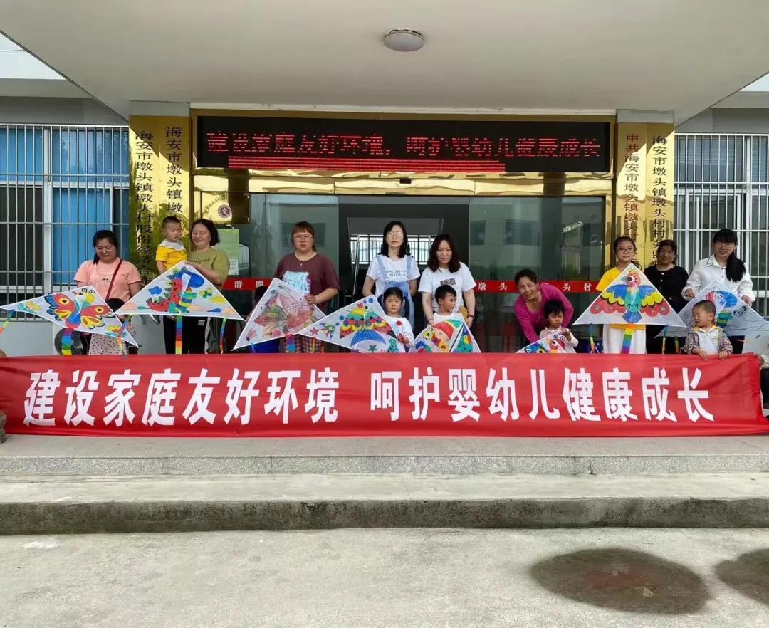 墩头镇计生办联合镇社区教育中心在墩头村开展“建设家庭友好环境,呵护婴幼儿健康成长”为主题的彩绘风筝亲子活动。