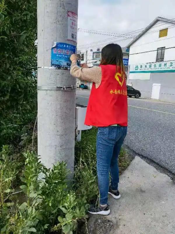 在整治行动中,身披“红马甲”的志愿者们擦洗市政公共设施上的“牛皮癣”和沿街商铺、居民小区、街巷墙体、住户门窗等处乱涂乱画及非法粘贴的宣传品。