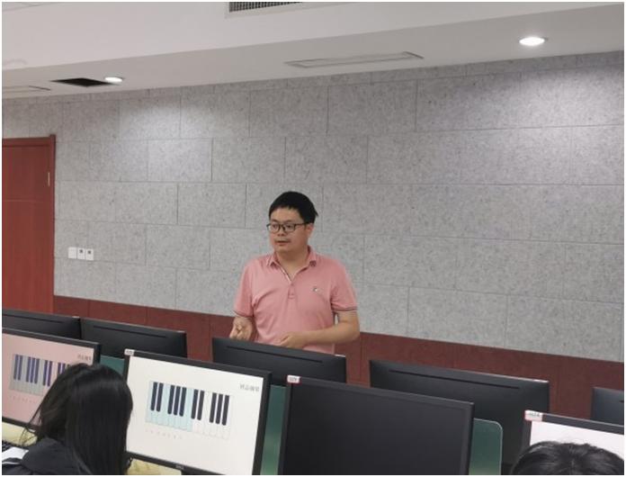 南通市骨干教师吴浩开设了《制作钢琴小游戏》示范课。吴老师贯彻先学后教理念,大胆尝试翻转课堂,引导学生课前充分预学、掌握基础知识和基本技能,课中演示操作、寻找问题并合作纠错充分激发了学生的学习积极性。