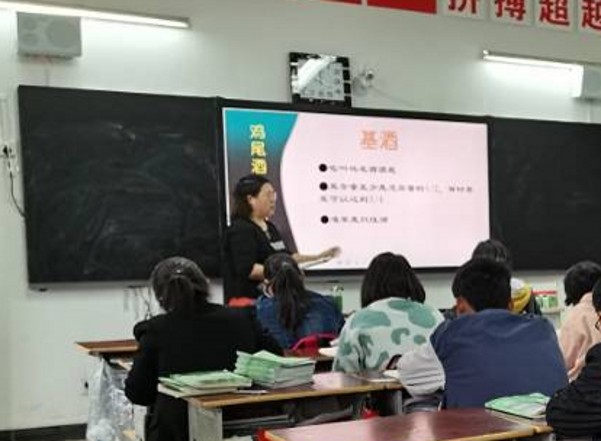 南通市骨干教师王晓云开设了《酒水服务》示范课。王老师贯彻以生为本教学理念,引导学生仔细观察鸡尾酒调制视频,讨论归纳鸡尾酒调制的方法、步骤,让学生在轻松、愉快的氛围中掌握相应学科知识和专业技能、养成良好学习习惯。