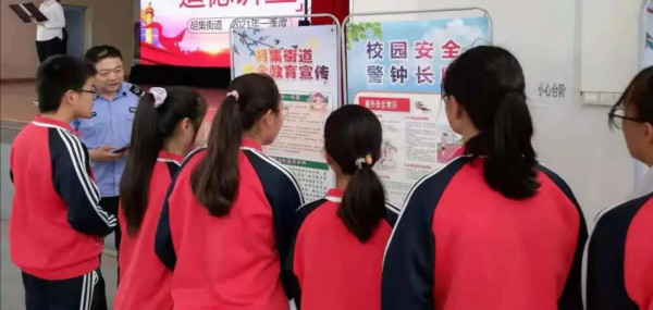 宣讲活动由综合行政执法局黄文鑫主持。活动前,黄文鑫还组织学生阅览胡集街道宣传展示板,并进行讲解。