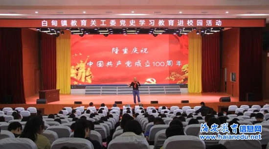 今年是中国共产党成立100周年,党史宣讲成为关心下一代工作的主旋律。白甸镇关工委、教育关工委、东西片老干部支部认真谋划党史宣讲进校园活动,利用本地红色资源,展示新中国成立以来白甸地方的党史,以白甸抗洪历史上有着深远影响的洪家滩十涝十排的事迹作为课程选题,通过前期采访、视频实录、动画展示、歌曲传唱等形式全面展示洪家滩十涝十排的丰功伟绩,歌颂了白甸人民在抗洪排涝的进程中敢于斗争、顽强拼搏、百折不挠、争取胜利的大无畏英雄气概。