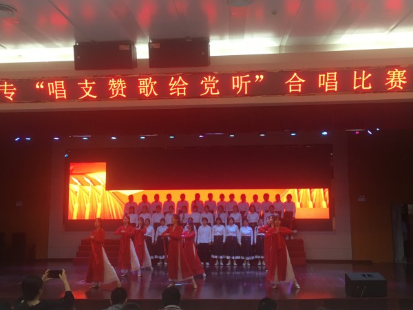 各系部推选出14个合唱节目参加决赛。一曲深情悠扬、动人心弦的《我和我的祖国》拉开大合唱比赛帷幕,《爱我中华》合唱队身穿各色民族服饰载歌载舞激情高歌;《绣红旗》合唱深情感人穿越时空将观众带回激情如火的岁月;《打靶归来》、《团结就是力量》雄浑高昂,震撼全场;《走向复兴》唱响时代最强音;《唱支山歌给党听》唱出学子对党的无限深情;《我们走在大路上》豪迈奔放,彰显学子迈入新时代的豪情;《向往》完美演绎了学子对新时代美好未来的向往;手语舞《感谢有你》唱出学子对祖国人民感恩之情;《在灿烂阳光下》饱含深情地赞颂祖国所取得的伟大成就,把音乐推向了高潮。