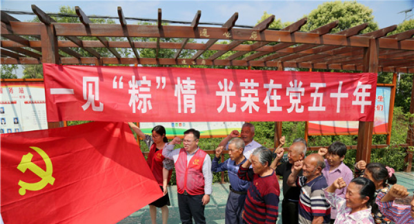 活动中,禾庄村的村民志愿者们和老党员一起包粽子,把对美好生活的祝福全都包了进去。吃着自己包的粽子,老党员们是糯在嘴里,甜在心中。村党总支书记李云峰向老党员颁发“光荣在党五十年”荣誉证书,并带领他们重温入党誓词,切实增强了老党员的幸福感和荣誉感。