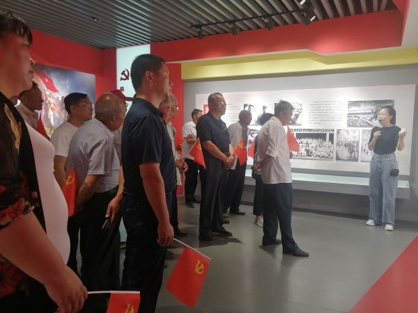 在东夏村讲解员的带领下,党员们参观了“初心纪念馆”。详细了解了中共海安第一支部——营西支部诞生的详细历史。馆内共有十大板块,从中共地下党员王庆生创办私塾学堂到海安第一个支部成立,从“五一”农民暴动、五次武装斗争到革命烈士、东夏村历届领头人的光辉事迹,最后到东夏村乡村振兴发展轨迹,种种画面汇聚成催人奋进的红色历史缩影。