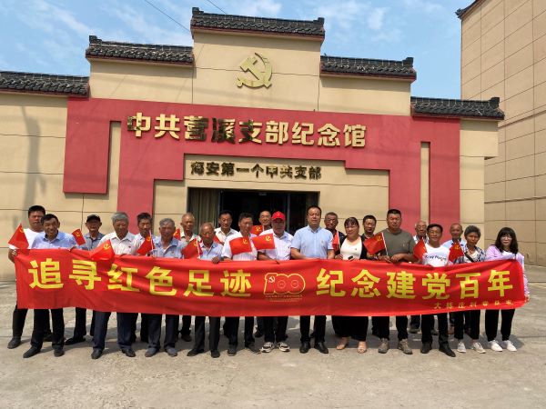 6月24日下午,曲塘镇大陈庄村党总支会同大陈庄村居民学校前往中共海安第一党支部——营溪支部诞生地雅周镇东夏村,开展“同寻红色足迹,共庆建党百年”主题活动。在寻根之旅中重温红色记忆,以深学促实干。