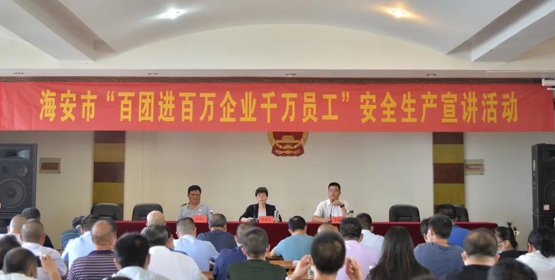 7月22日上午,海安市委常委、市纪委书记、监委主任杨春红走进海安县中山合成纤维有限公司开展“百团进百万企业千万员工”安全生产专题宣讲。镇党委副书记、镇长候选人吴海荣,镇安委会成员单位负责人,各村安全员,规模以上企业负责人、安全员参加活动。
