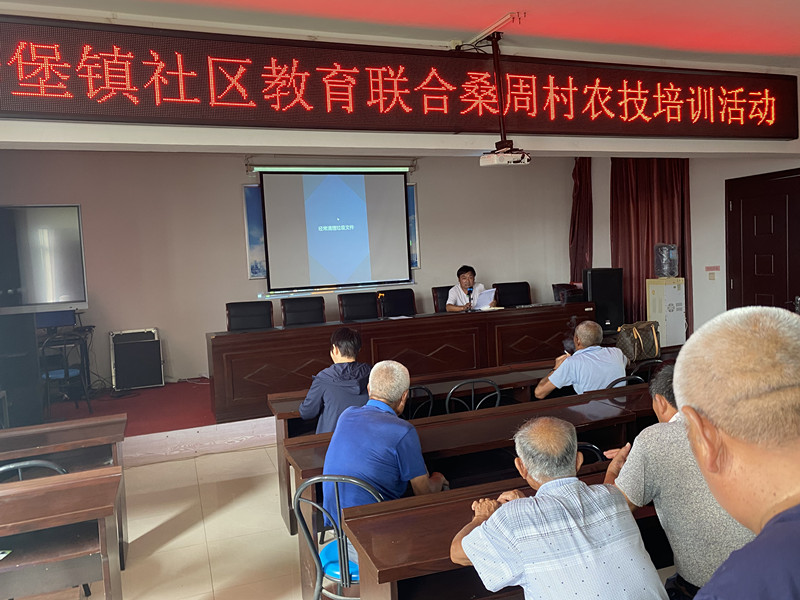 7月24日上午,李堡镇社区教育中心邀请镇农技员张健到桑周村举办农技培训讲座。讲座由桑周村刘书记主持,四十多位种植户参加了培训。