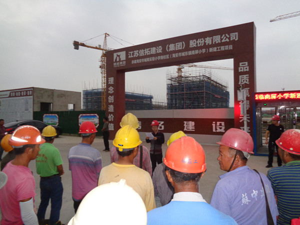 为进一步增强施工人员安全生产意识,不断提升施工人员安全素质,9月2日早晨,海安开发区社区教育中心在南屏小学新建工程处小广场举办安全生产知识讲座。