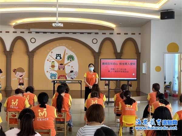 为铭记中国共产党百年奋斗历程,传承红色基因,赓续建党初心,本次教师节庆祝活动,幼儿园还举行了“学党史,争做最美幼教人”师德演讲活动,大家纷纷走上讲台,结合党史学习教育,或以自己在教育中的亲身经历,或以身边同事的事迹为题材,表达了对幼教事业的热爱之情,道出了追梦幼教人的初心使命。
