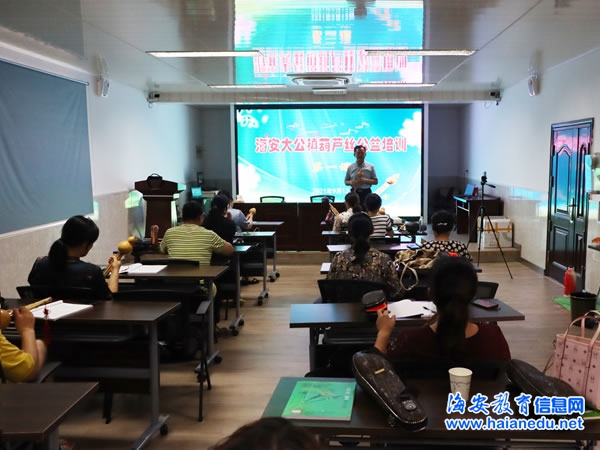 南通市葫芦丝协会会员张老师为大家授课。他从葫芦丝的日常爱护、葫芦丝的特色、葫芦丝的乐理知识、葫芦丝按孔、葫芦丝演奏技巧等方面做了讲解和示范,让全体学员受益匪浅。