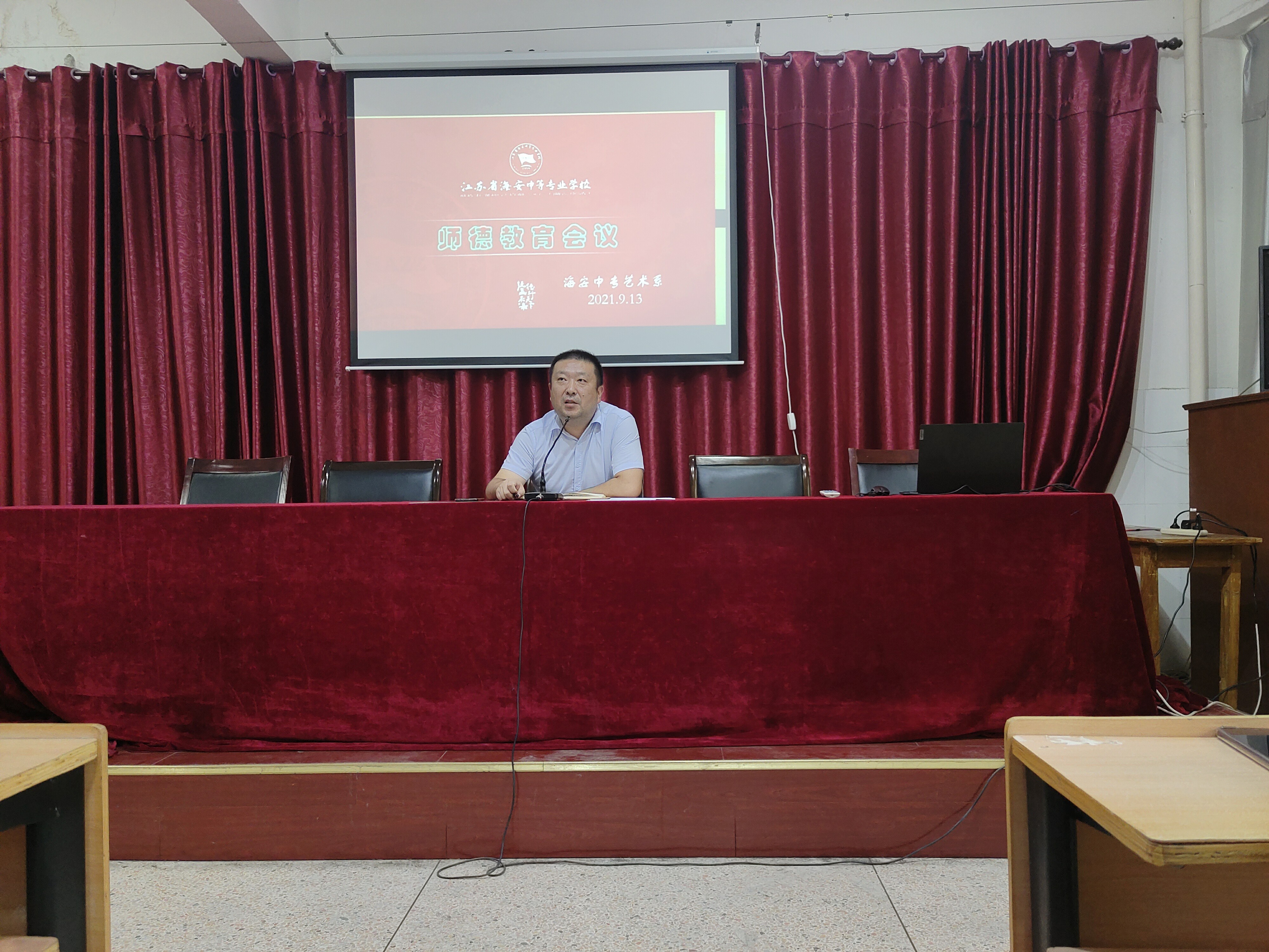 此次会议主要有三个方面的内容:一是陈朋主任带领全体教师学习了中共海安市教育纪律检查工作委员会《关于面向中小学校和教师开展有偿补课及违规收受礼品礼金问题专项整治工作的通知》、《新时代中小学教师职业行为十项准则》及学校印发的《关于学生入学离校的管理规定》的通知。二是陈朋主任指出了加强师德师风教育的重要性、必要性,重申教师必须牢固坚守的底线。三是陈主任分析了当前系部面临的挑战和考验,要求所有人员牢固树立责任意识和理解意识。