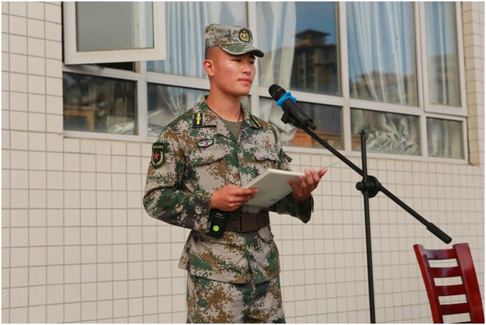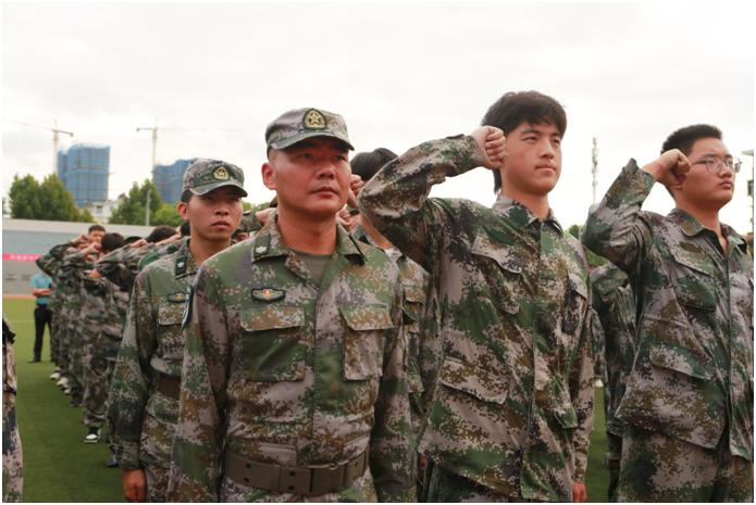 教官代表盛奥代表全体教官表态,他们一定会以身作则,秉承“带兵如虎,爱兵如母”的作风,努力提升学生的各项基本素质,让学生通过军训提高政治思想觉悟,增强集体主义精神和纪律观念,磨炼意志,培养吃苦耐来的精神,增强国防观念,圆满完成军训各项任务