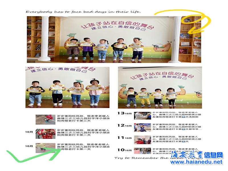 孝亲敬老,从我做起 ——海安市曲塘三之三幼儿园重阳节系列活动
